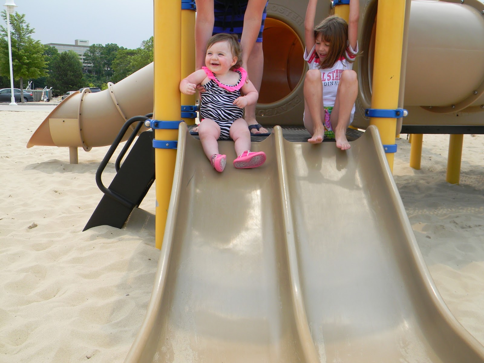 Aubrey actually walked in the sand eventually. I was so proud of her. She was walking back and forth when she got off the slide and kept trying to climb up the stairs herself. She absolutely loved the slide.
